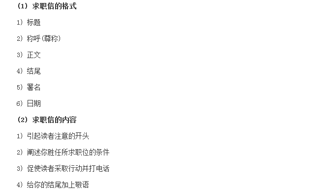不論你的自薦材料送往或寄往何處,求職信總是要遵循簡明扼要這一原則。通常用一頁紙,不超過4段的文字,以信函的格式標準書寫或打印。