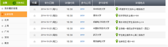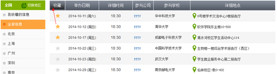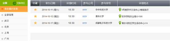 點(diǎn)擊“我收藏的信息”便可以查看已經(jīng)收藏的宣講會(huì)信息,如下圖: