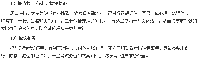 對大學(xué)專業(yè)知識進行必要復(fù)習(xí)時筆試準備的重要方式。一般說來筆試都有大體的范圍,可圍繞這個范圍翻閱一些有關(guān)圖書資料,復(fù)習(xí)鞏固所學(xué)過的課程內(nèi)容,溫故知新,做到心中有底。