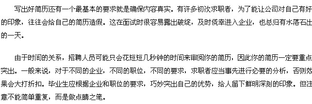 簡歷內(nèi)容要真實(shí),重點(diǎn)突出