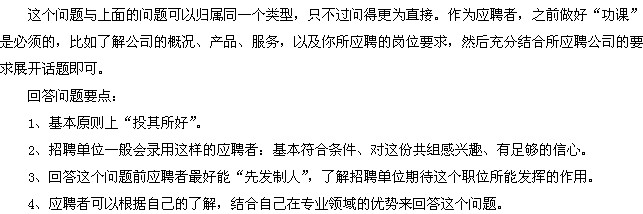 參考答案:我十分看好貴公司所在的行業(yè),我認(rèn)為貴公司十分重視人才,而且這項工作很適合我,相信自己一定能做好。