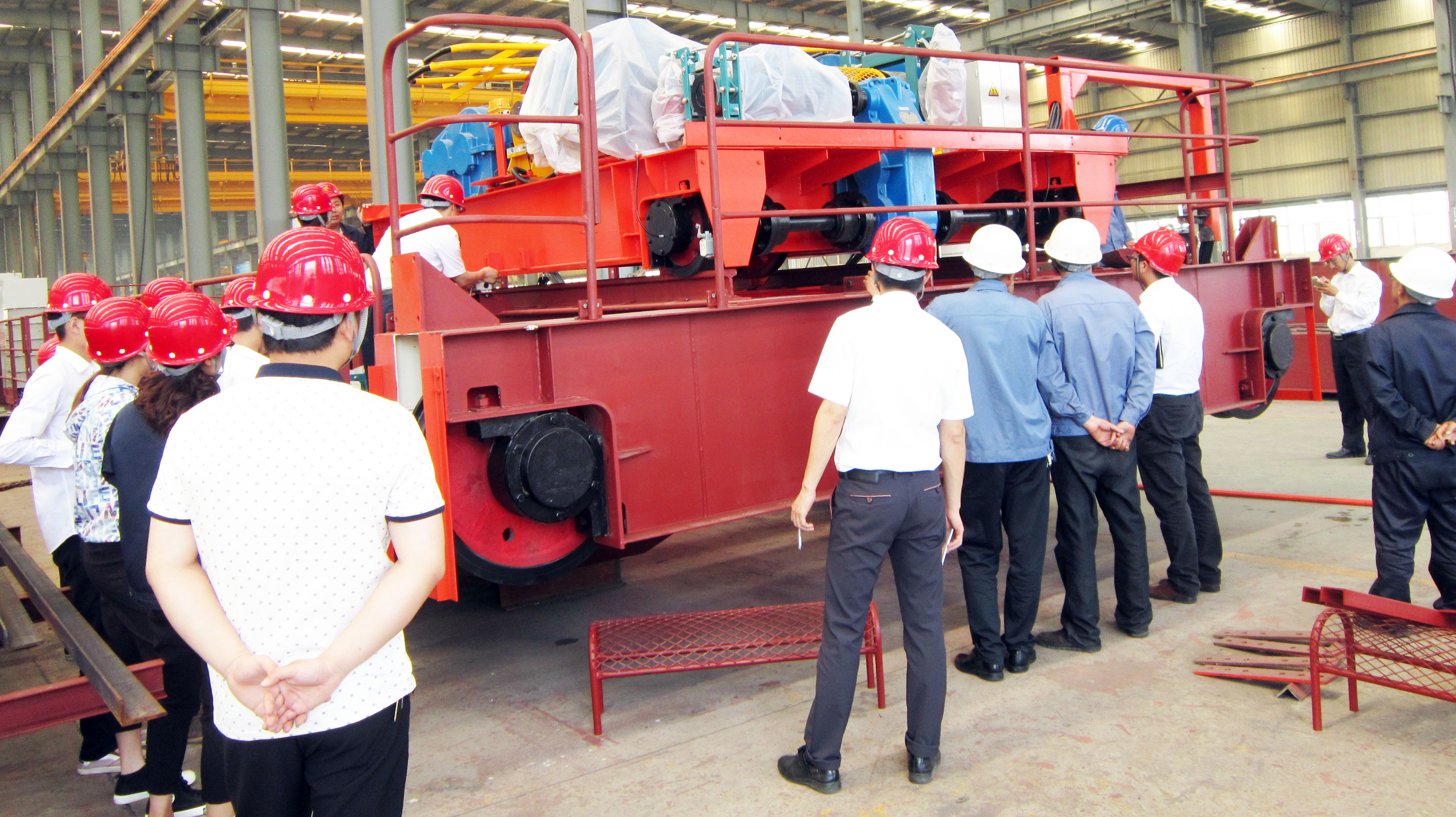 5月21日上午,大方公司總經(jīng)理胡旭、生產(chǎn)副總李曉寧帶領(lǐng)技術(shù)部、質(zhì)量保障部和生產(chǎn)班組長對已經(jīng)制作完畢的QD32/5t-22.6m雙梁起重機(jī)進(jìn)行場內(nèi)組裝驗(yàn)收、評審。胡總和大家一起來到現(xiàn)場認(rèn)真查看評審樣機(jī),評審過程中發(fā)現(xiàn)的問題大家相互討論,從電纜橋架的合理布置到電器柜底座的安裝,從小車運(yùn)行的極限位置到限位開關(guān)、緩沖器的位置調(diào)整,從小車導(dǎo)電架的高度到小車安全底座的尺寸是否符合圖紙等等,大家都認(rèn)真討論,暢所欲言,現(xiàn)場提出自己的整改意見。不知不覺兩個(gè)小時(shí)就過去了,評審現(xiàn)場的氣氛還是那么的濃烈,大家積極測量、實(shí)驗(yàn)和討論,**終提出了近20條提升質(zhì)量的改進(jìn)建議。